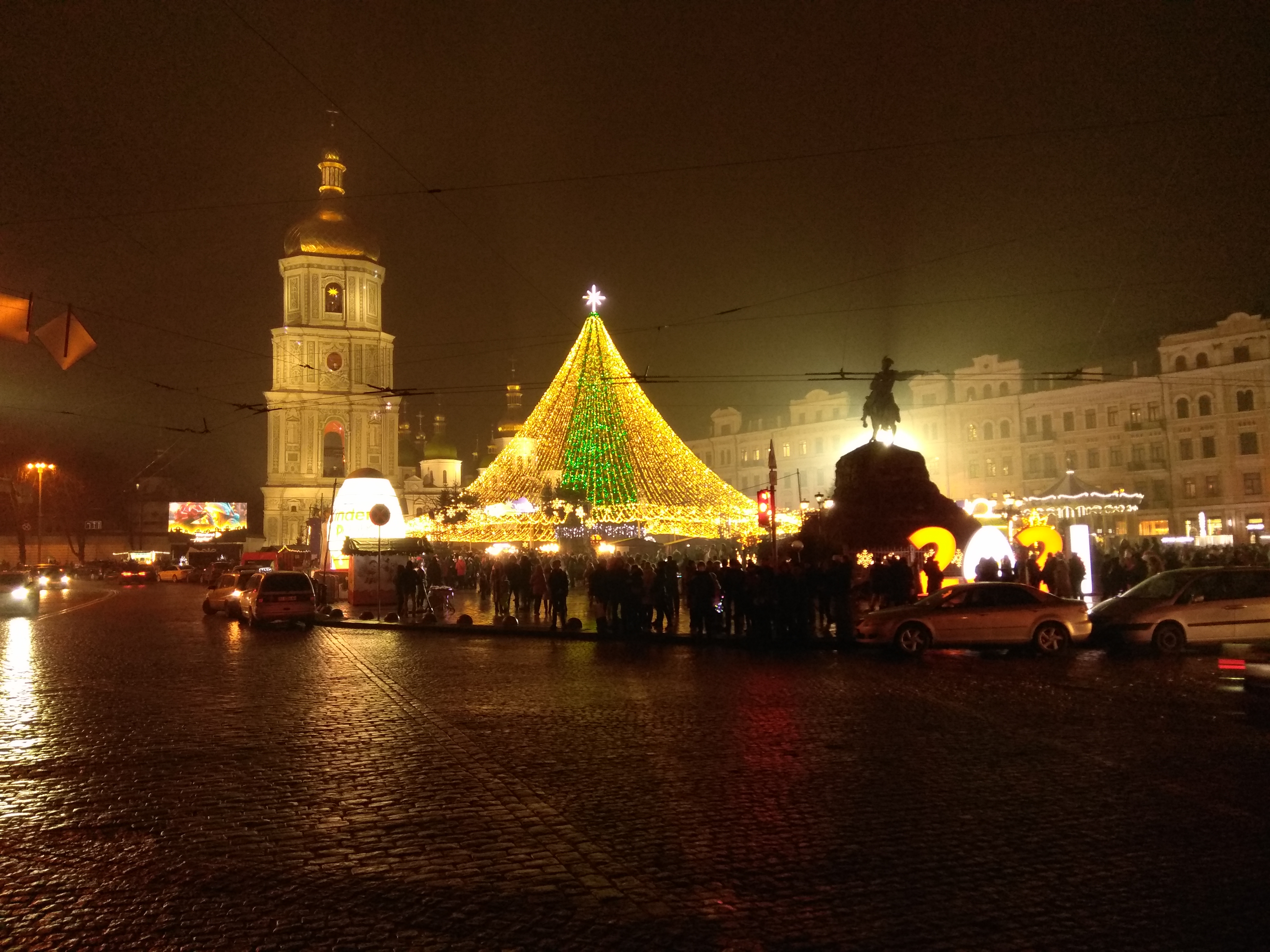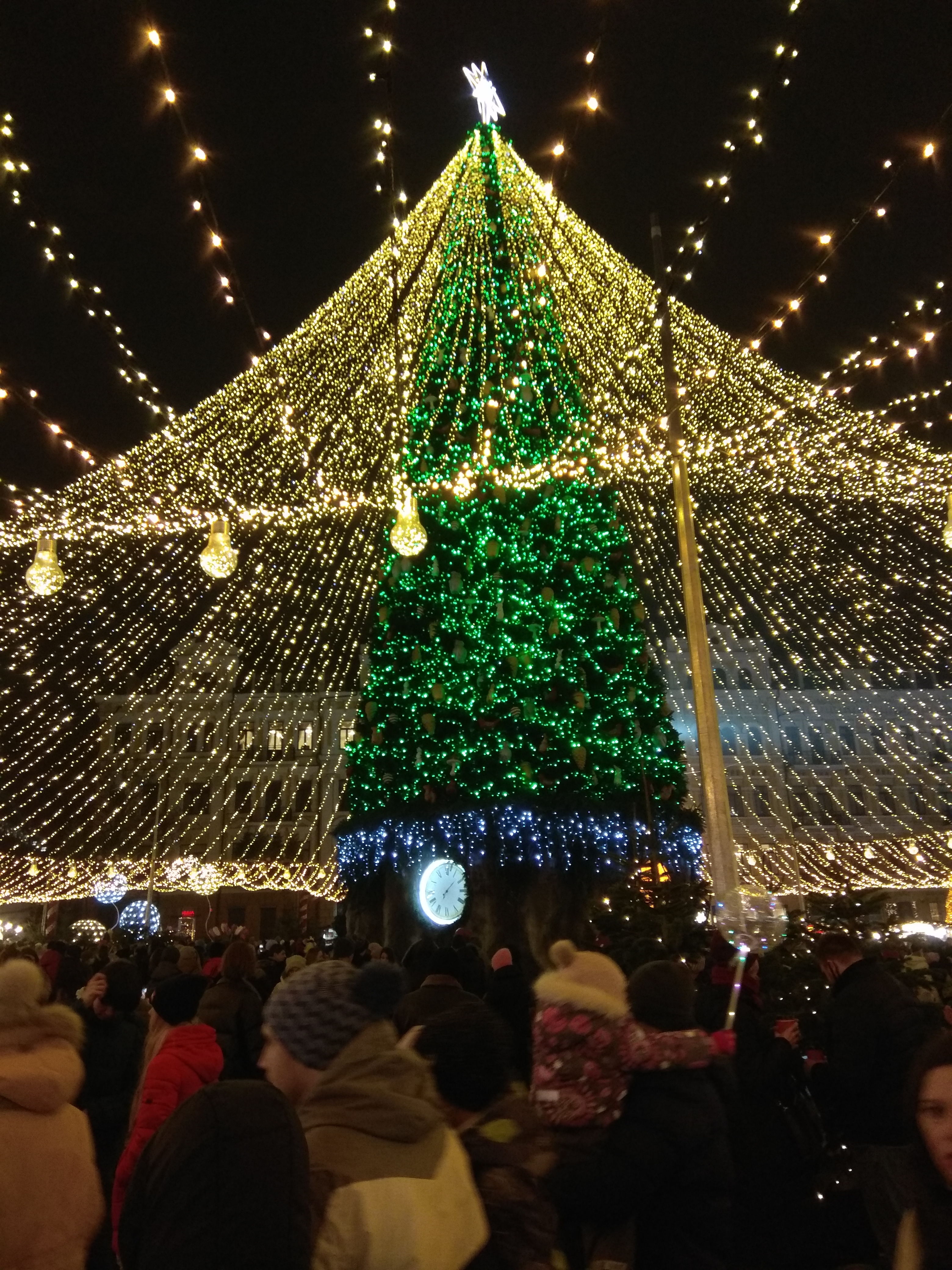 Собор и ёлка пытаются перещеголять друг друга)